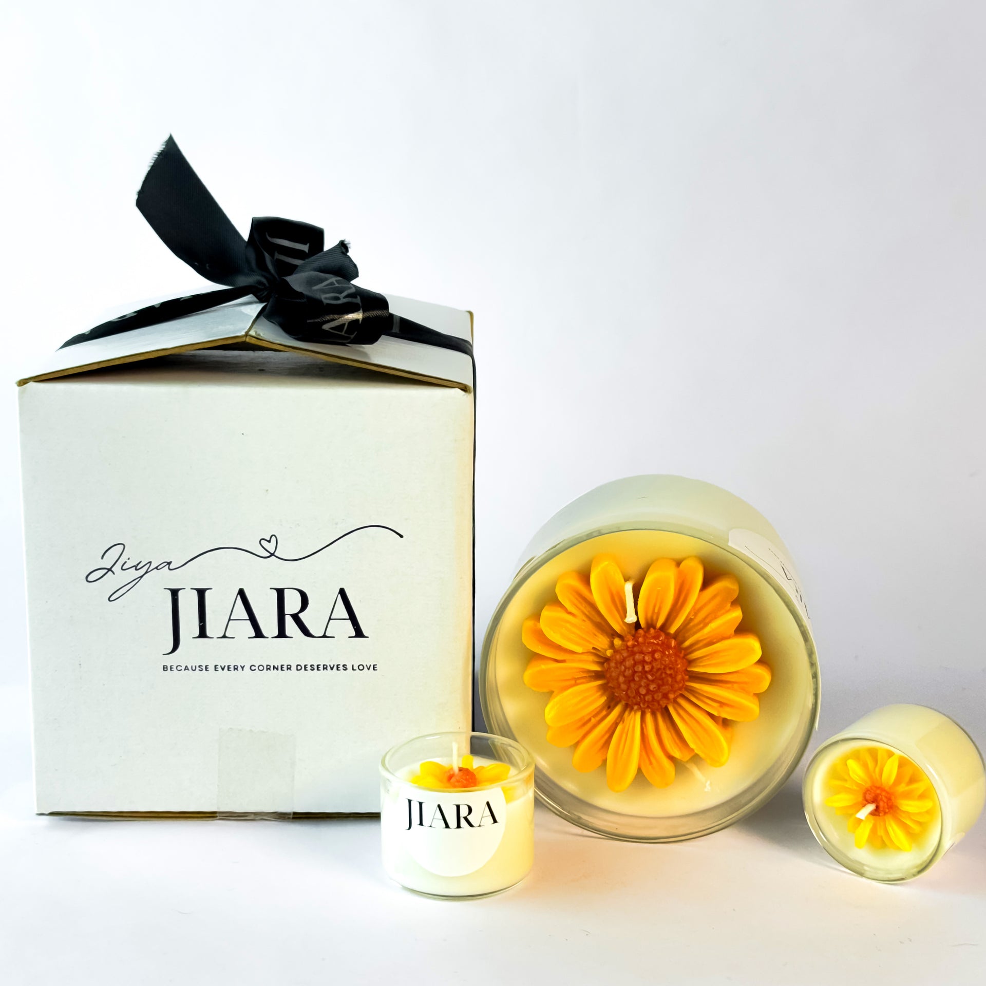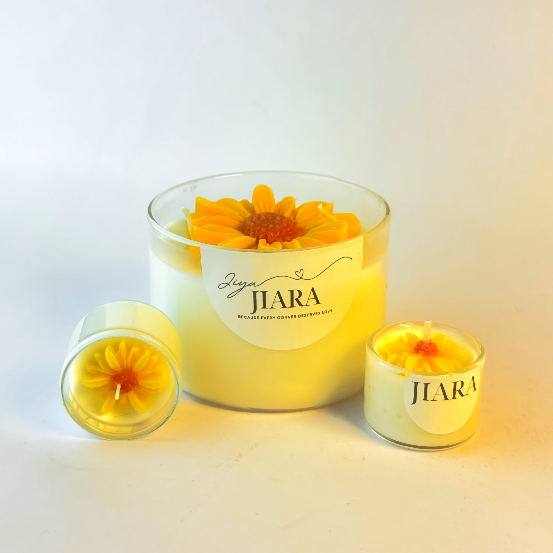 Yellow Sunflower Scented Candle Set with 2 Mini Floral Candles (RatKiRani)