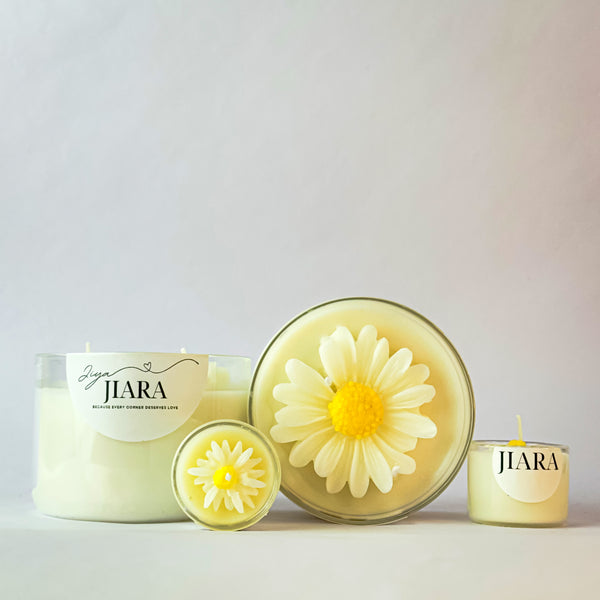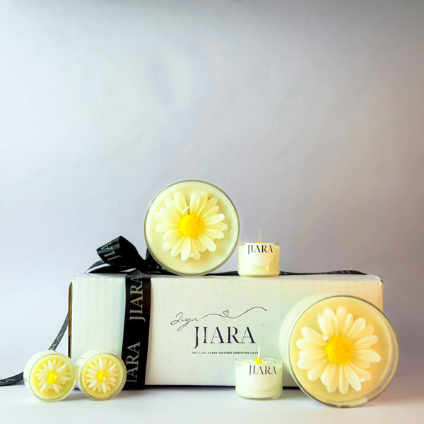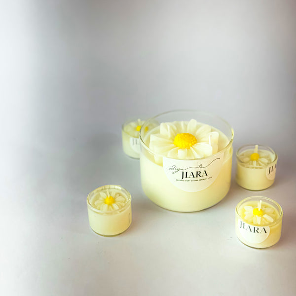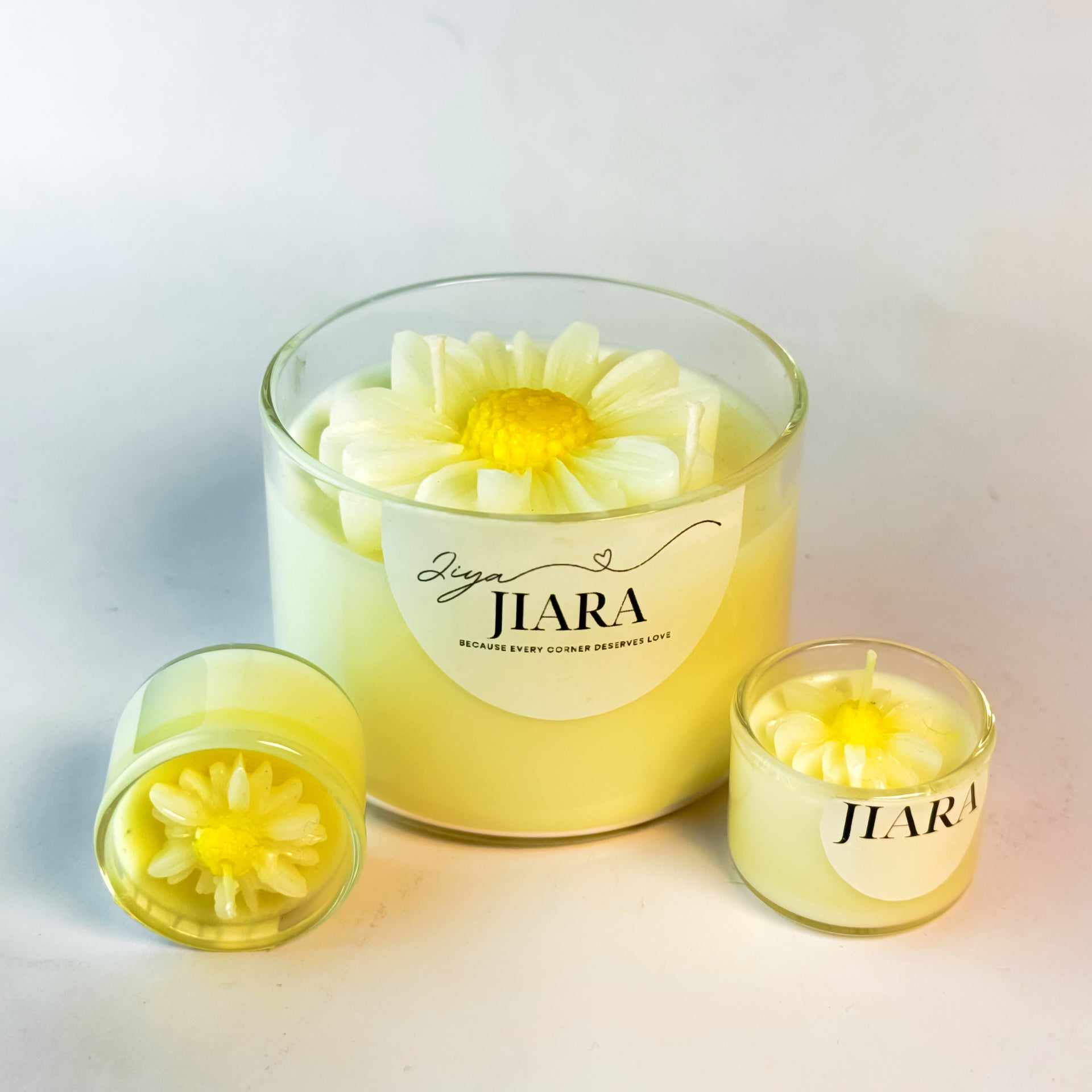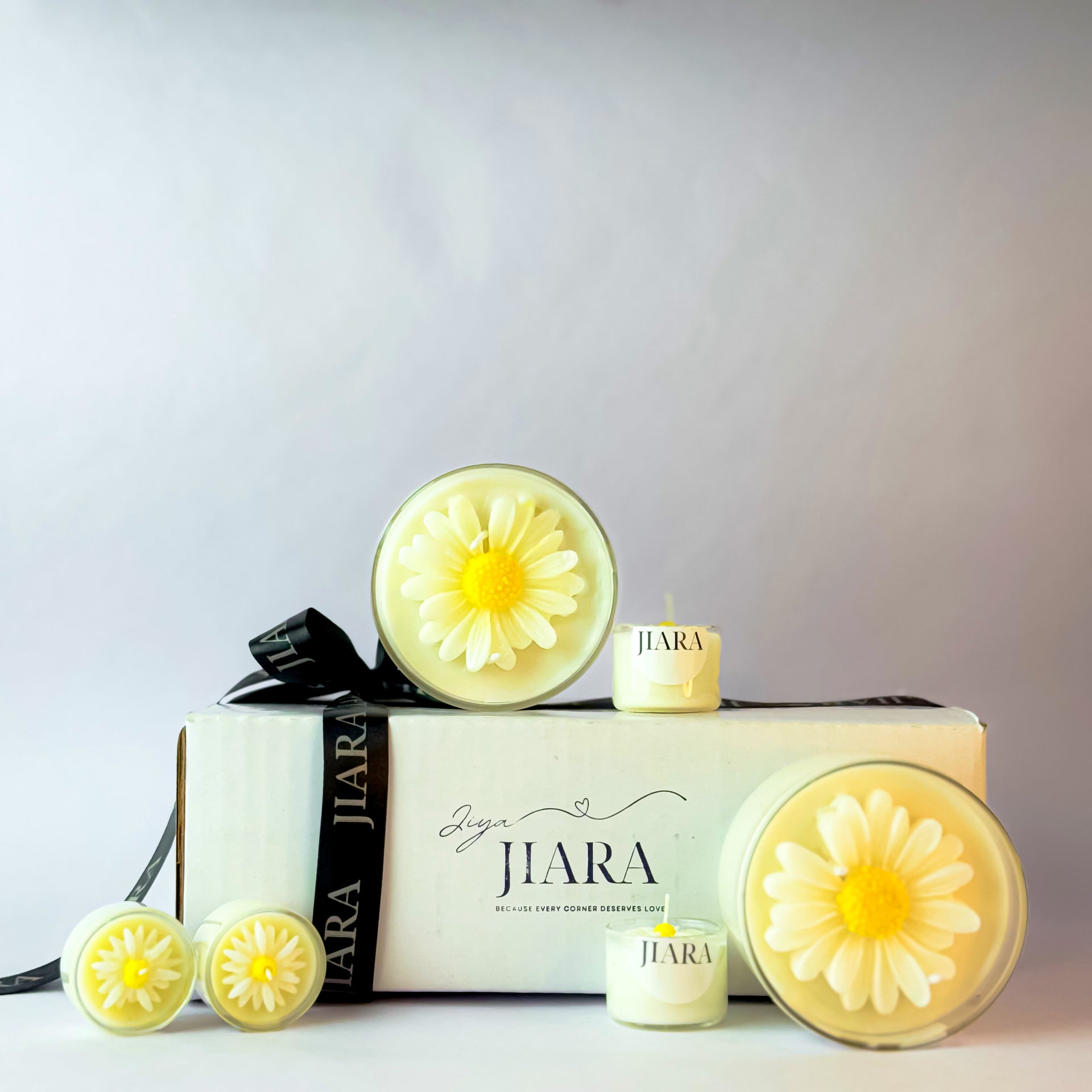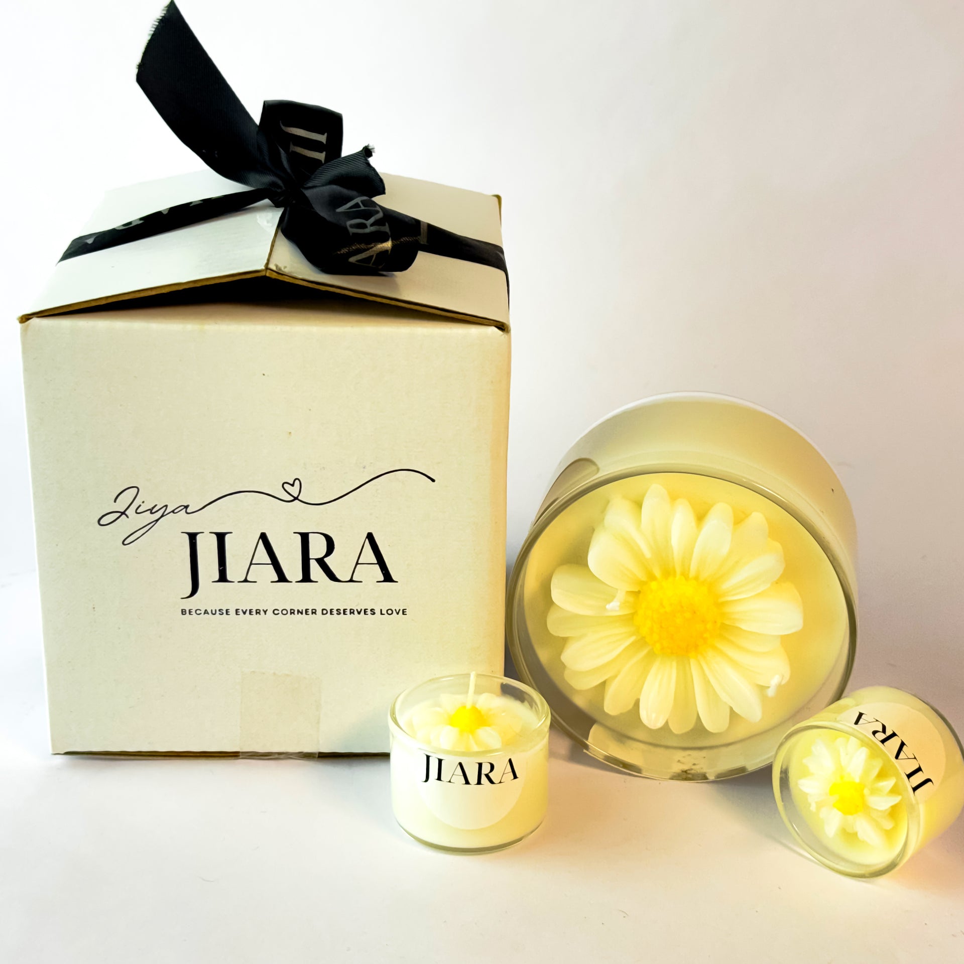 White Sunflower Scented Candle Set with 2 Mini Floral Candles (Jasmine)