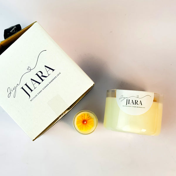 Bring a touch of floral elegance and soothing fragrance into your space with our Yellow Sunflower Scented Candle Set. Handcrafted with love, this charming set includes one beautifully detailed white sunflower candle and two complementary mini floral candles – perfect for gifting or adding a decorative accent to any room. Each sunflower candle measures 2 inches in height and 3 inches in width, made with 150 grams of premium soy waxfor a cleaner, longer-lasting burn. The natural soy wax ensures a non-toxic, eco-friendly experience, ideal for any home environment. Customizable Fragrance: Choose from a variety of delightful scents to match your mood or occasion – whether it's calming lavender, refreshing citrus, sweet vanilla, or any fragrance of your preference. Elegant Glass Jar: Housed in a sleek, reusable glass container, this candle not only smells wonderful but also adds a touch of sophistication to your décor. Its floral design makes it a...